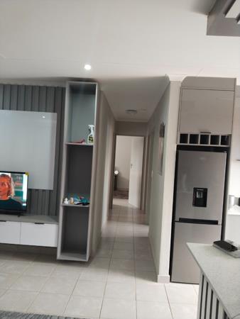 A fairly new home, consisting of 3 spacious bed rooms with cupboards , open plan lounge, dining area, kitchen nicely fitted with white granite tops, bathroom and shower in the main bedroom and Paved yard . It is in secured complex with 24/7 access control personnel. Clean designated kids play ground within the complex.