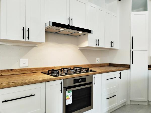 Beautiful, modern and spacious kitchen with butchers block tops.