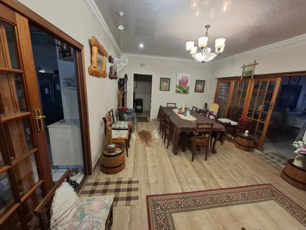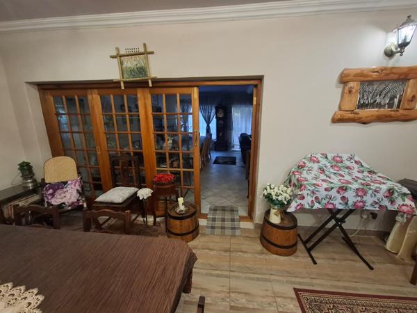 Outside, youll find a lush, well-maintained garden, a sparkling swimming pool, and ample outdoor seating areas, including a covered patio with a built-in braai great for hosting guests year-round.