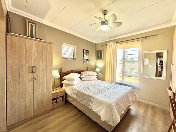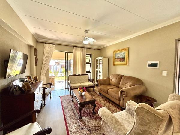 Key Features include: 2 Spacious bedrooms, 2 modern bathrooms, Gas Geyser and Stove Top, Access to greywater to water gardens and plants or for other uses, Premium Blinds throughout this property, Open-plan living and dining area, Built-in braai for effortless entertaining, Contemporary kitchen with quality finishes, Secure estate living with golf course access, With additional secure storage space. Don t miss this stunning opportunity!