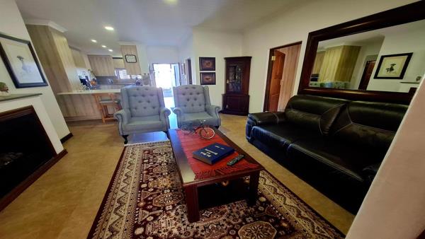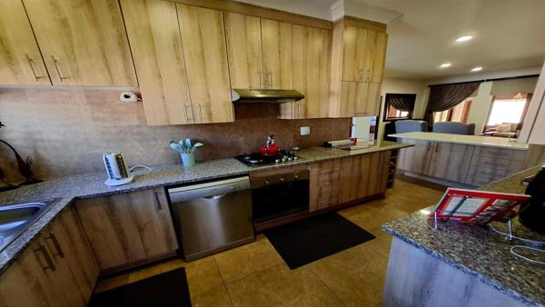 The property itself presents an Entrance Hall and Lounge with fire place. The Kitchen is a designers paradise with a gas hob, under counter oven, extractor fan, lots of built-in cupboards with a light brown finish and lovely granite counter tops. The kitchen also leads out to a covered patio currently used as a Laundry section.