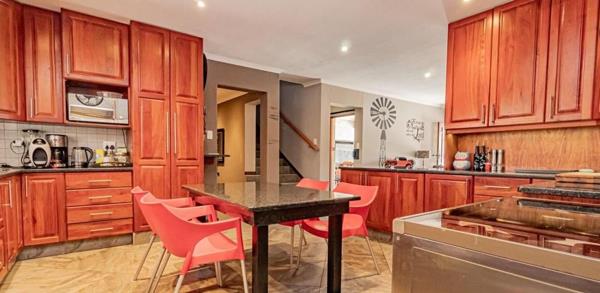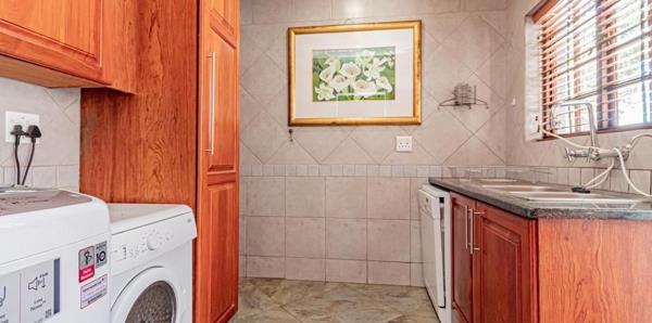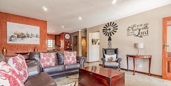 Outdoor living is a dream with a large patio, built-in braai, and a sparkling pool perfect for hosting family and friends. The lush garden is kept green and flourishing with the help of a borehole. Pets are welcome too, ensuring the whole family feels at home.