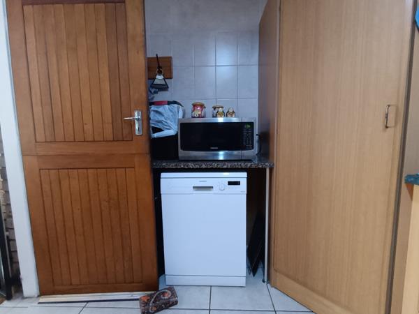 The kitchen also has ample cupboard space , under counter oven and space for a dishwasher. There is an open plan living and dining room. There is an extra room that can be used as a hobby room /entertainment area and has place for extra fridges, connections for washing machines and enters into the garage.