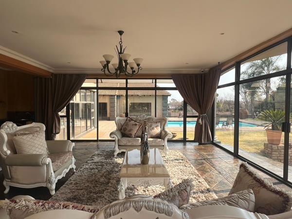 Step outside through large stack glass doors and discover a lush landscaped garden, huge and magnificent water and garden artefacts, a well-functioning irrigation system, crystal clear pool, a Boma giving that bushveld feel, a dam with a fabulous outdoor bush Lapa. This house has it all!!