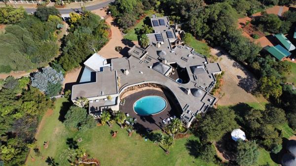 Furthermore the house boasts 4 bedrooms (all en-suite) and walk-in dressing rooms. The master bedroom has its own private lounge. Between the bedrooms there is a pajama lounge for the kids adjacent to another lounge for parents a designer''s kitchen with a breakfast nook and walk-in fridge / freezer a unique dining room / wine cellar with huge fireplace. Furthermore it boasts: a study, guest toilet, a bigger than normal 2 bedroom (al en-suite) flat with full kitchen, 2 living rooms and outside braai patio, also a second flat, 6 garages, a breathtaking boma and very unique servants'' quarters in the form of round bungalows, a distance away from the house.