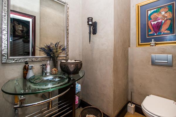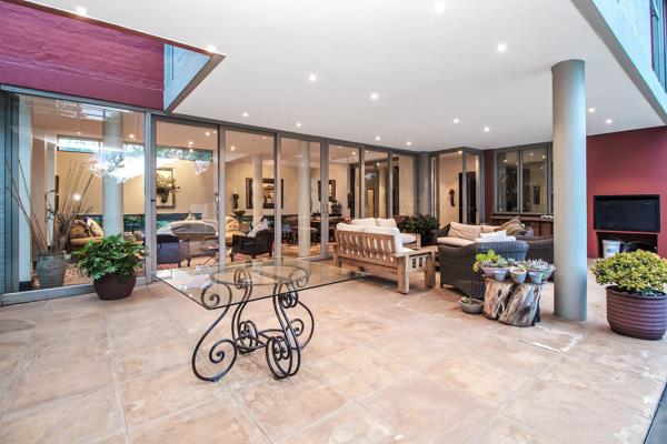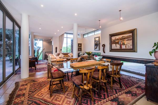 The owners have collaborated with the architect to bring alive so many glorious aspects in creating a home filled with eye-catching features and textures. Glamorous with style and panache exuding a tantalizing aura of quality, enveloped in a natural haven of trees and a verdant green indigenous garden. The outstanding use of glass windows and sliding doors allows for indoor / outdoor living experience.