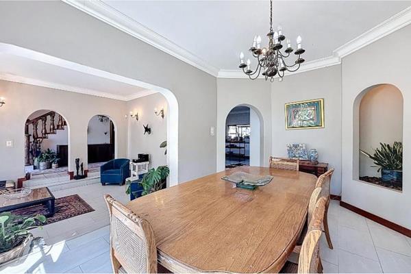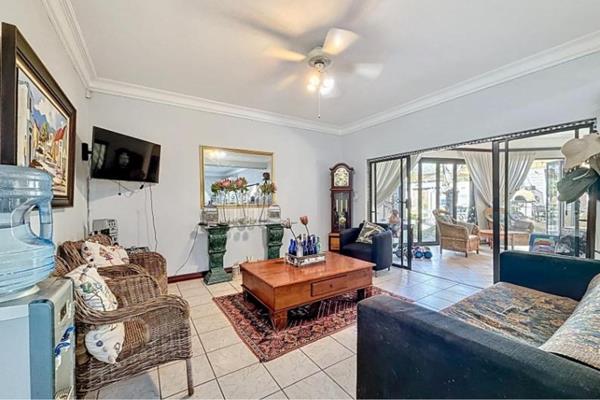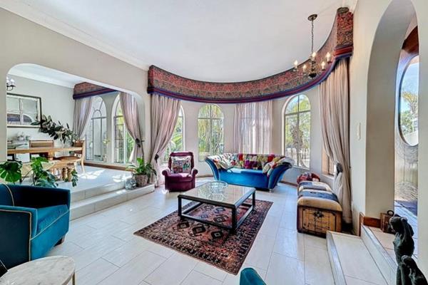 The kitchen is the heart of the home, with a full scullery and open-plan layout that flows into the dining and living areas. Multiple lounges provide flexibility, whether you are hosting friends, enjoying a movie night, or creating a quiet reading corner. A charming upstairs lounge opens onto a balcony with garden views, offering a peaceful retreat.