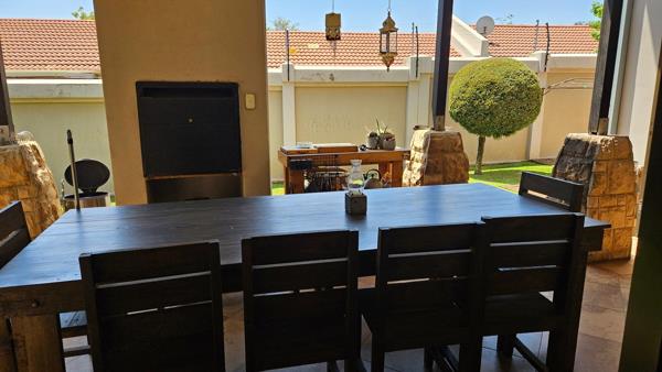Discover secure and luxurious living in this beautiful three-bedroom, two-and-a-half-bathroom home within the highly sought-after Mooikloof Gardens estate. The ground floor welcomes you with an inviting reception area that flows seamlessly into a spacious living room and an adjacent braai areaperfect for entertaining. A modern, open-plan kitchen boasts sleek finishes and connects effortlessly to the dining area and patio, making indoor-outdoor living a breeze.