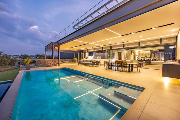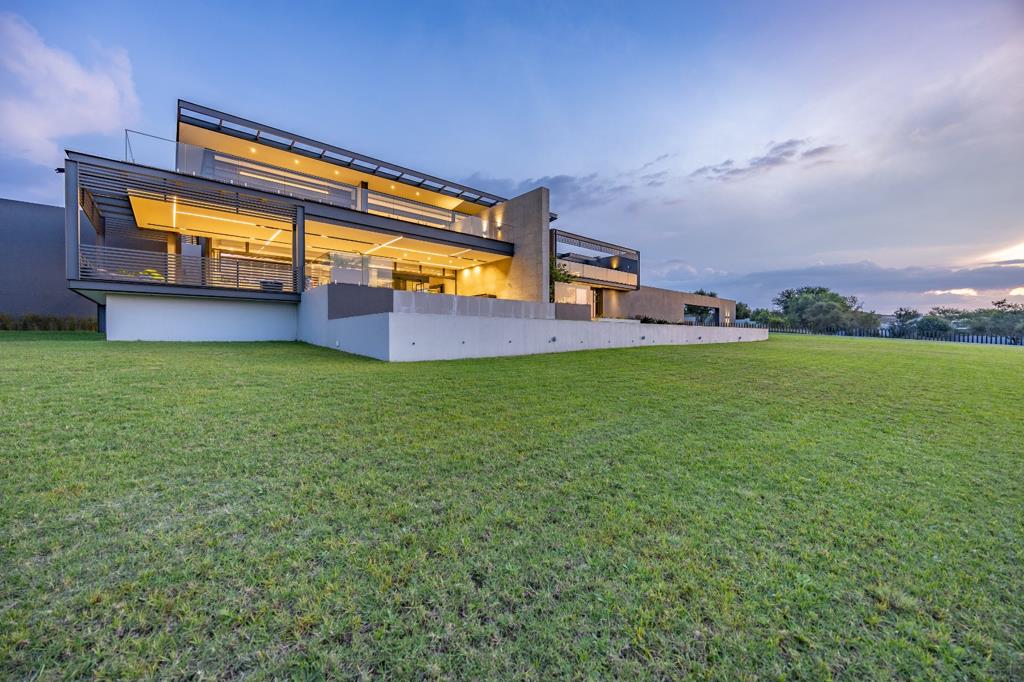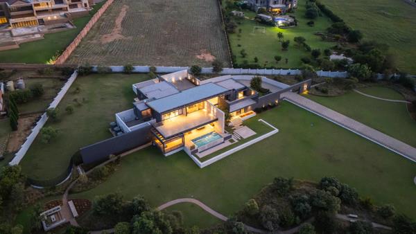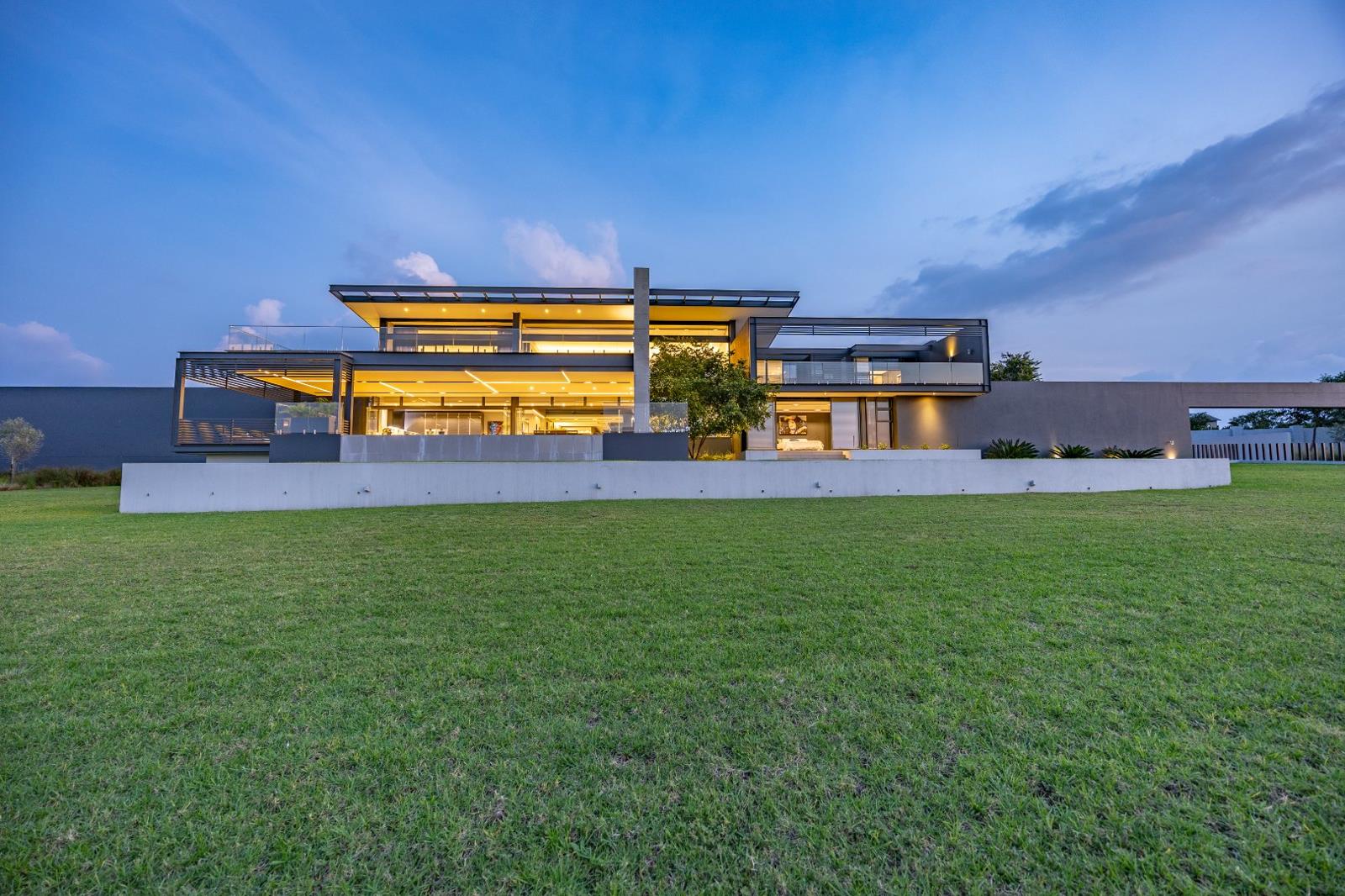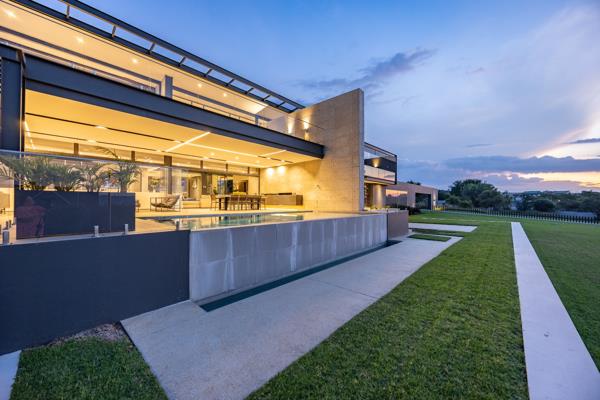 Outstanding aspects of this opulent residence are remarkable architectural design features combined with extraordinary materials, finishes, modern fittings and world-class craftmanship. The exterior design features angular facades, rooflines, and modern textures, combining concrete and glass to create a modern residence. Attention to detail, combined with its natural surroundings, creating an extraordinary living experience. The entertainment areas were designed to optimize functionality and comfort for both indoor and outdoor spaces. This remarkable residence of 937sqm is situated on a landscaped and irrigated stand of 8565sqm, completed with dedicated pathways.
