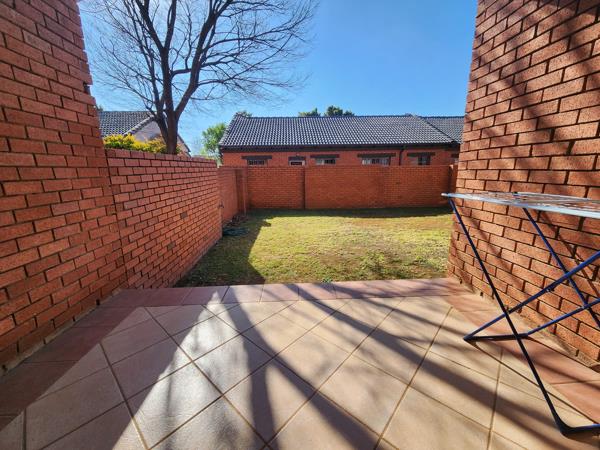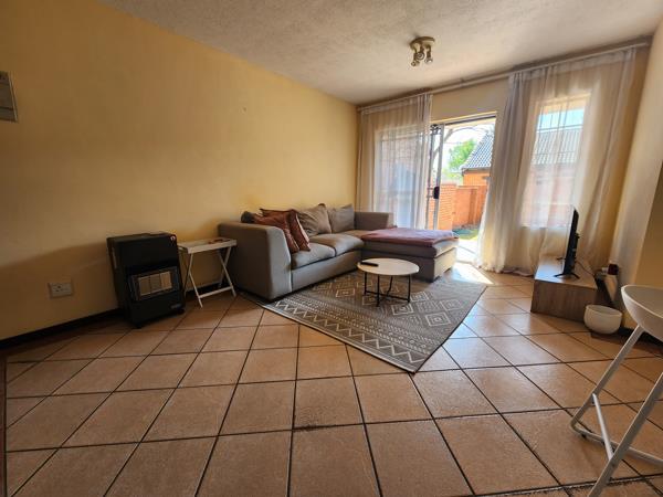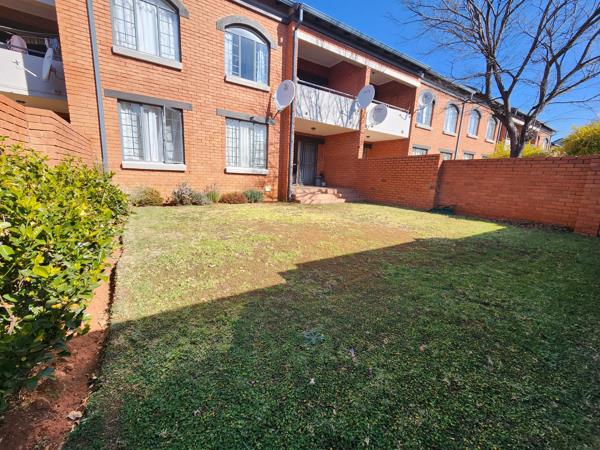 This GROUND FLOOR unit offers 2 bedrooms and build in cupboards fully tiled. A fully tiled bathroom featuring a shower, toilet, basin, bath & toiletries cupboard. Open plan tiled living area with a wall design leading to a SPACIOUS GARDEN. Open plan kitchen with plenty of cupboard spaces with stove and hob, wallpapered on breakfast nook. single lock up garage, visitors parking and a huge well-maintained garden.