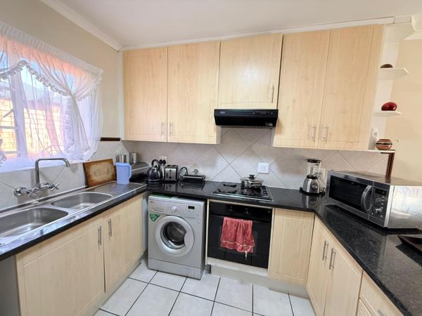 Offering an open plan design, the kitchen has granite counter tops, a breakfast counter and two spaces for appliances and plenty of built-in cupboards. The lounge and dining room with tiled flooring throughout offers ample open plan space! The home flows seamlessly from kitchen to dining to bathroom to bedroom, the first bathroom has tiled flooring and a bath toilet and basin, the first bedroom has a burst of natural lighting and is spacious with enough built-in cupboards. The main bedroom offering a full en-suite bathroom, ample built-in cupboards and plenty of space!