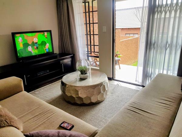 2 Bedroom, 2 bathroom townhouse with double garage in mint condition. Safe and secure living in Mooikloof Ridge Estate.
