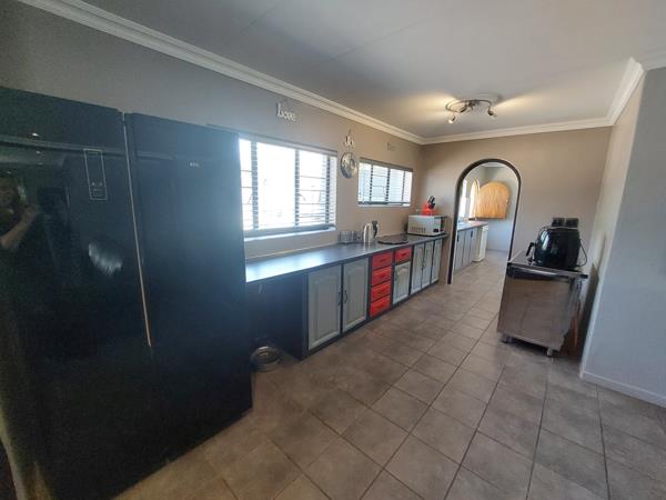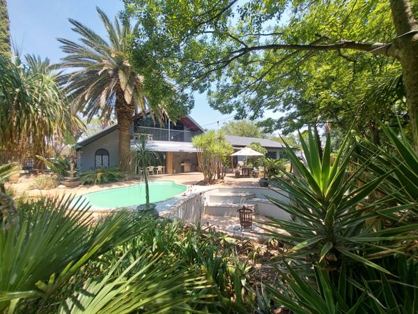 1) Main house (4 bedroom & 3 bathrooms) with pool. The 4th bedroom is a unit with separate entrance and ideal to be used as a flat and features a private lounge/gym area, guest toilet & massive full en-suite bathroom. Four living areas of which the formal lounge is open plan with dining room and kitchen. Kitchen has a scullery and pantry. Second lounge/ Entertainment room has built in bar. Four bedrooms of which 2 has full en-suite bathrooms. Gym with bathroom facilities or can be used as another lounge area. Big paved back patio, parking areas + a storage room. Outside entertainment lapa with bar overlooking pool. Manicured garden area.