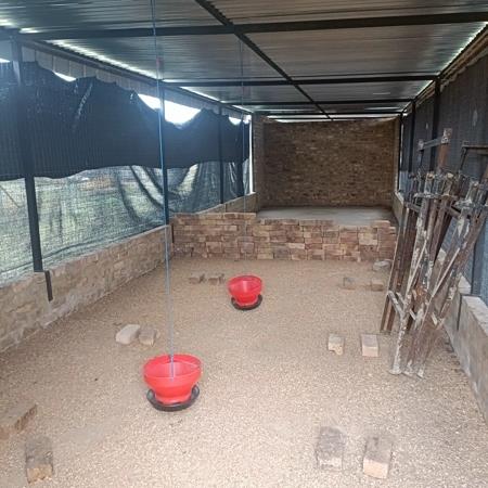 Stunning 12 Ha farm with 70 % arable land and 8 small chicken houses (3200 chickens in total) with handling facilities for sheep / goats / cattle. The living area consists of a 4-bedroom house and the second building consist of garages, carports, workshop and storeroom with an outdoor entertainment area with splash pool. Staff accommodation available which consists of 1 bedroom, 1 living area and kitchenette. The living area secured by 1.2 m electric fence with panic buttons.