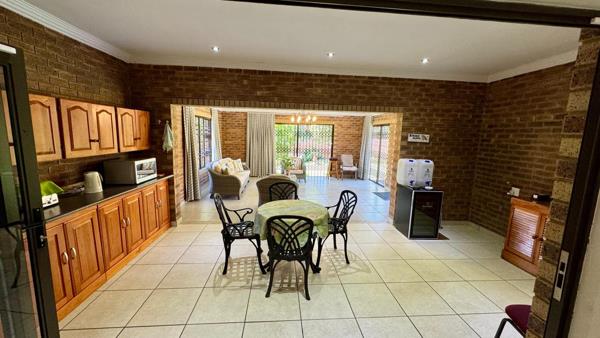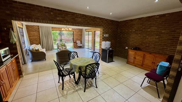 The open-concept layout is perfect for hosting gatherings, with living spaces that flow effortlessly into the entertainment areas. Enjoy the built-in braai, lush garden views, and natural light streaming through large windows and frameless glass doors.