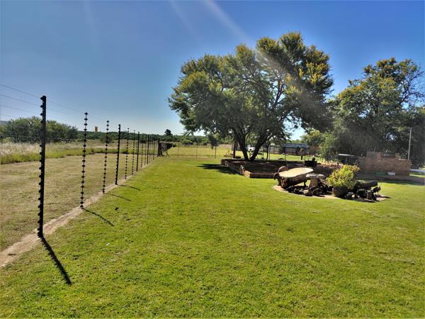 70% of this organized piece of gem is arable land and equipped with 1x strong borehole (5000 l/ph), 2 phase Eskom electricity, a 36 m2 store room and is perfectly secured with 1.2m electric fencing around the main residence and 2 panic buttons.