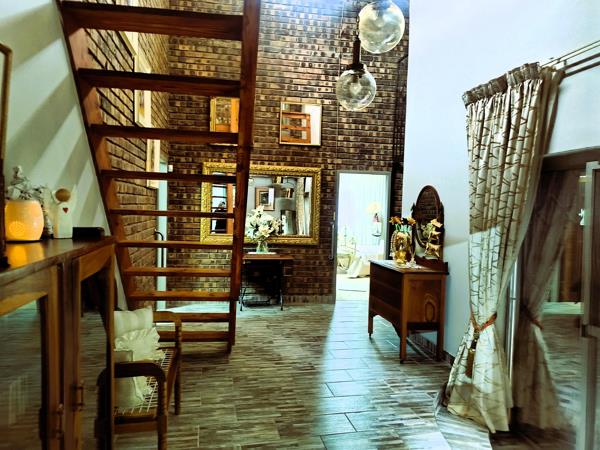 The stunning grounds are beautifully landscaped with rolling lawns, a palm tree-lined driveway, and fruit trees, creating a serene and inviting environment. Automated entrance gates, outdoor lighting, and an intercom system add to the security and convenience. A flexible upstairs room can serve as an additional bedroom or office, while the expansive grounds offer ample space for a vegetable garden or small-scale farming.