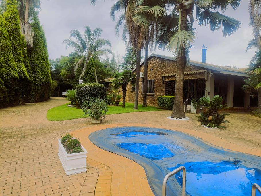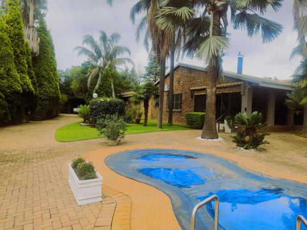 Unlock the potential of this extraordinary 5-bedroom estate, set on 4.6 hectares of picturesque land just 20 km from Pretoria East. Located near prestigious venues like Victorian Manor, Galagos, and Diamond Hill, this property offers an incredible opportunity for various ventures, from a luxurious family home to a thriving guesthouse or event venue.