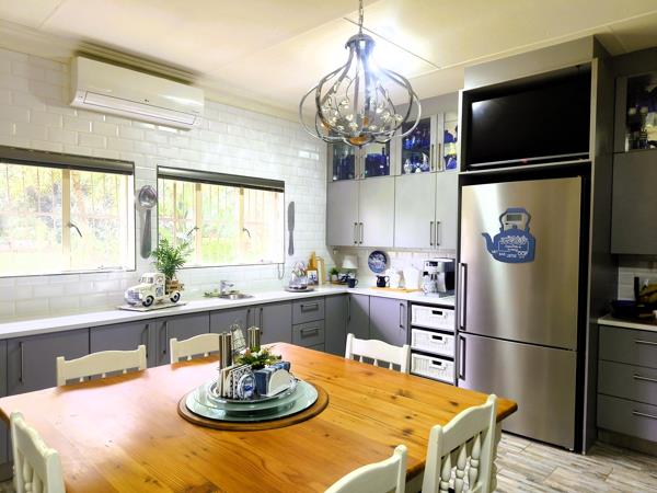The spacious home features five well-sized bedrooms, including four en-suite rooms for added privacy. The living areas are thoughtfully designed with a study, both formal and informal lounges, and a dedicated dining roomideal for entertaining on any scale. The modern kitchen is fully equipped with a gas stove, breakfast nook, pantry, and a large scullery and laundry area, ensuring convenience in daily living. With air conditioning throughout and additional security features like trellidoors and tinted windows, comfort and privacy are guaranteed.