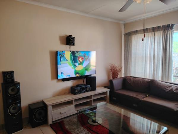 The outdoor entertainment area, complete with a built-in braai, provides the perfect setting for relaxed family gatherings and weekend hosting. The enclosed back veranda, secured with burglar bars, further enhances the propertys strong security features, including an alarm system linked to armed response.