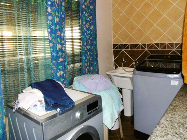Scullery and laundry with double sink.