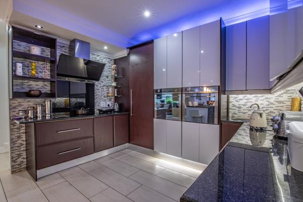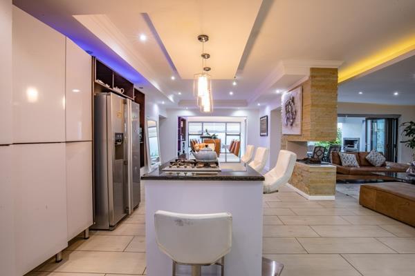 The heart of this home lies in its entertainment and living spaces. A cozy TV room sets the scene for movie nights while the cinema lounge elevates the experience of cinematic indulgence. A second lounge provides a warm, inviting space for intimate gatherings, complemented by a formal dining room and a captivating bar area, setting the stage for hosting guests in style. The kitchen, a chef''s dream, is equipped with top-of-the-line appliances, featuring a double oven, a double-door fridge, a 4-plate gas hob, and an electric stove. The adjacent scullery offers practicality with ample space for three appliances, ensuring seamless culinary experiences.