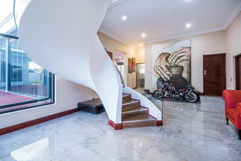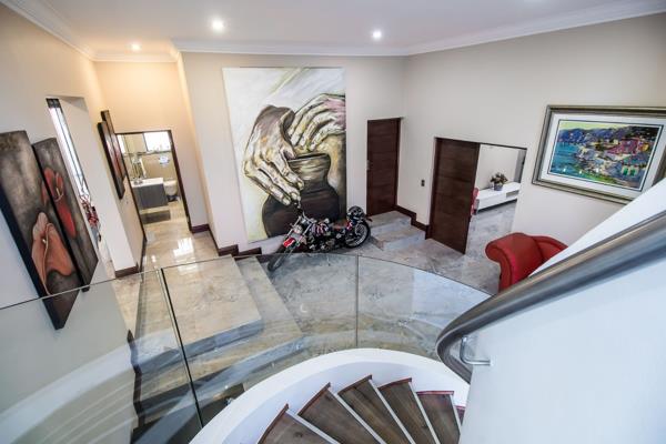 Upon entering, a double-volume entrance hall with a captivating spiral staircase creates a lasting impression. Ascend the stairs to discover a welcoming upstairs pyjama lounge, perfect for relaxing with a book or enjoying quality time with loved ones.