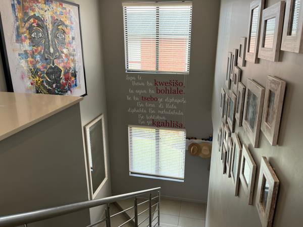 Upstairs it has a large landing as well as a pajama lounge/study with an extra built in cupboards, flowing from this area there are 2 spacious bedrooms with build in cupboards with full bathroom, The main bedroom is separate and has a en suite with bath tub, shower, double basins and separate toilet.