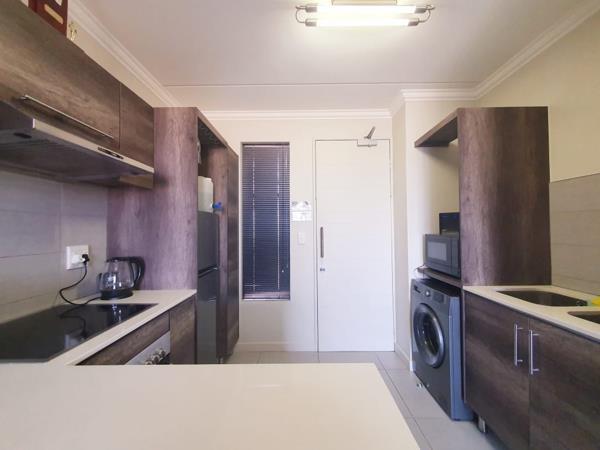 A short hallway leads to the double bedroom with built in cupboards and sliding doors which also opens up to the balcony. The full modern bathroom is opposite the bedroom and comprises a shower, bath tub, wash basin and toilet.