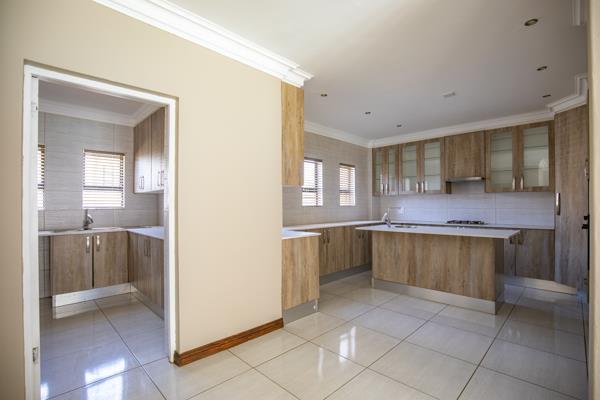 Modern open plan kitchen with a breakfast nook where informal meals can be enjoyed or one can convene with guests whilst busy in the kitchen. Enjoy the privilege of a separate scullery.