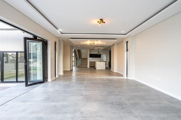 The dining room flows seamlessly into the lounge/entertainment area, where youll find large stack doors that open onto a covered braai and boma area, ideal for outdoor entertaining. The private swimming pool and large garden offer the perfect setting for relaxation and fun.