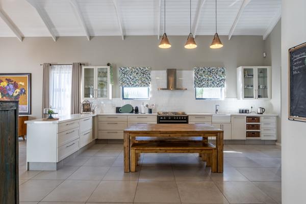 The open-plan kitchen is a chefs dream, boasting SMEG appliances, a walk-in pantry, scullery, and separate laundry roomperfect for modern family living and effortless entertaining.
