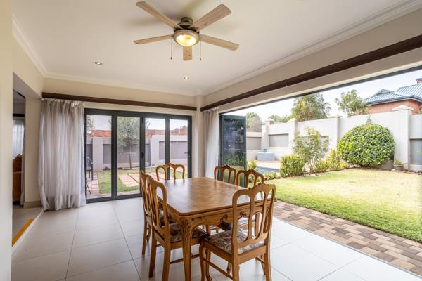 A highlight of this home is the enclosed patio with stack doors and a built-in braai, creating a versatile all-season entertainment space. Open the doors to extend your living area to the boma, sparkling pool, and landscaped gardenperfect for relaxed evenings or entertaining under the stars.