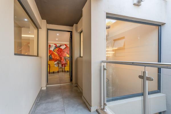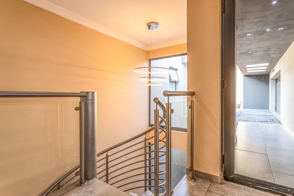 A beautifully designed staircase leads you downstairs to the main living areas, enhanced by a charming indoor garden feature at the base of the stairs, bringing nature indoors and adding a touch of serenity and style to the space.
