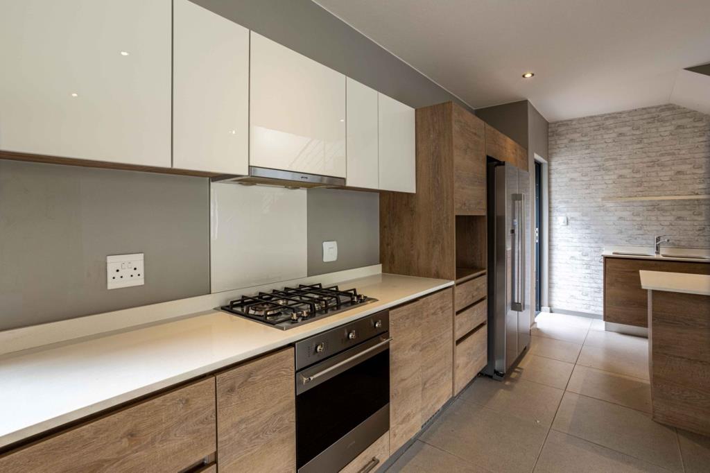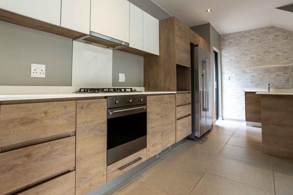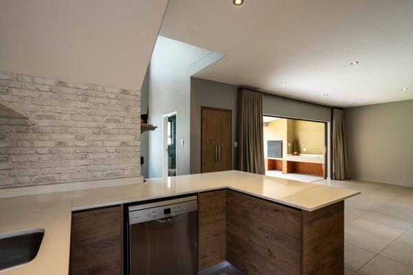 Elegant French doors open onto a covered patioideal for entertainingcomplete with built-in cupboards and a built-in braai. Sophisticated touches like tiled window sills and a thoughtfully designed pyjama lounge elevate the interiors.