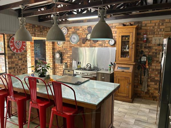 Well-constructed open plan 6 bedroom, 3 bathroom house, kitchen, scullery, an office with 3 living areas, Solar system and stand-by generator.