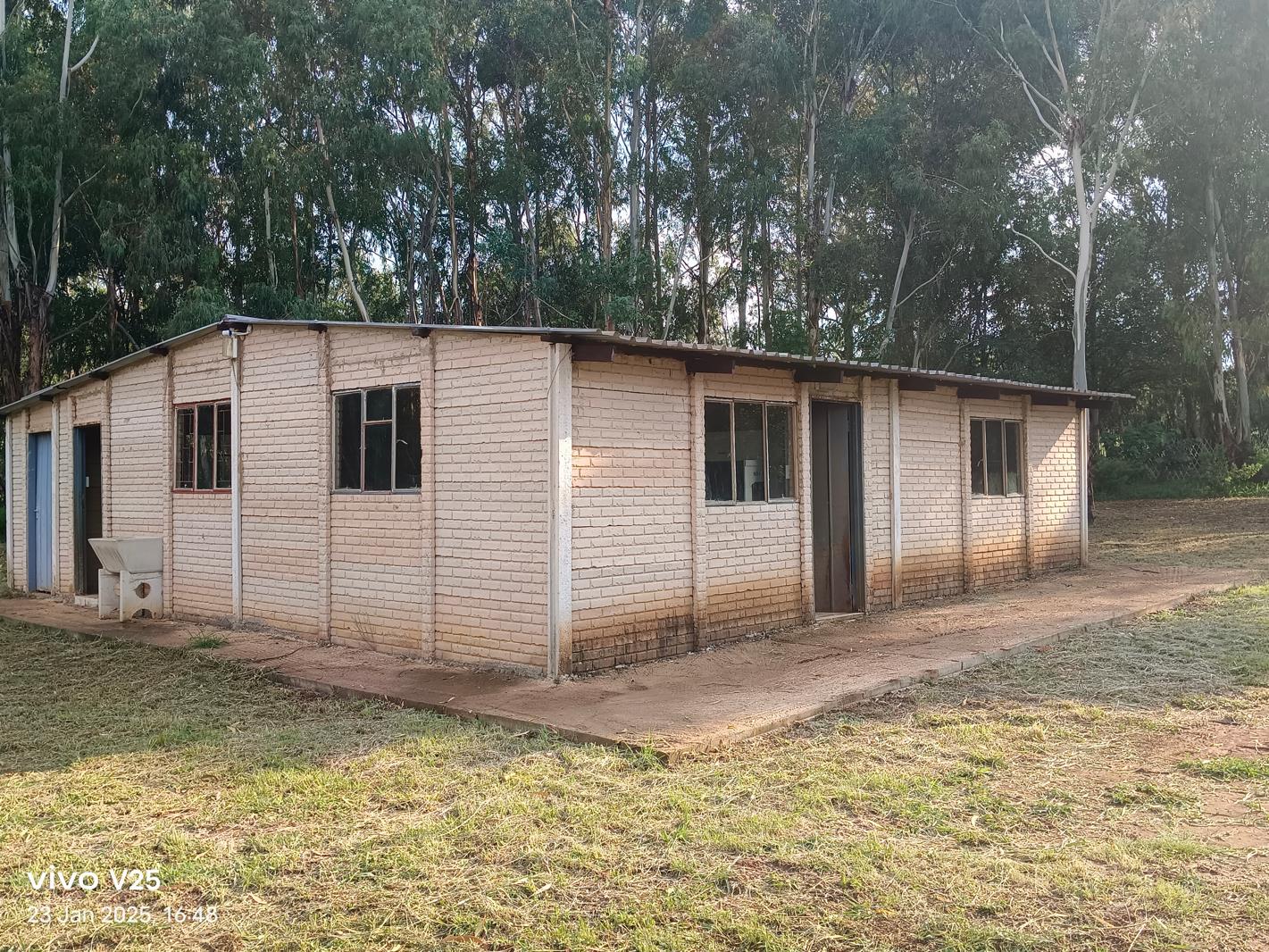 Housing and storage consists of prefab concrete walling and corrugated roof : 1 x 2 bedrooms and 1x 4 bedrooms and a double garage.