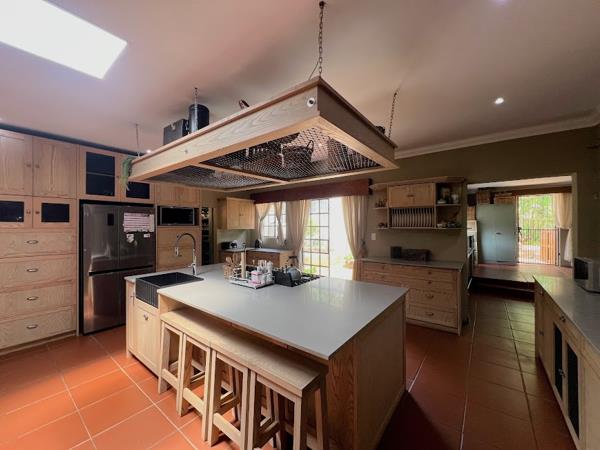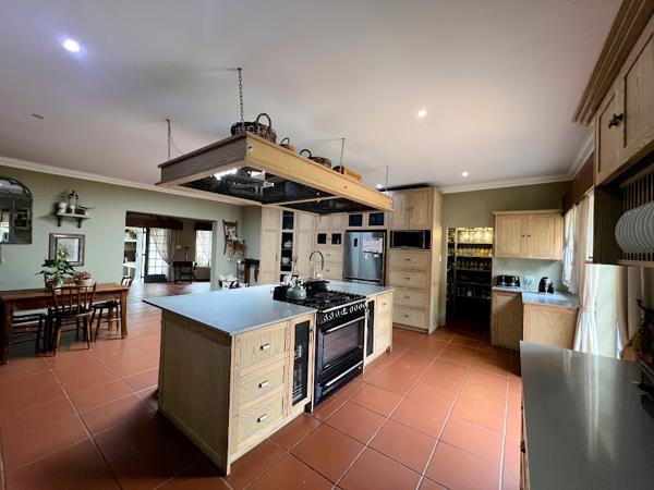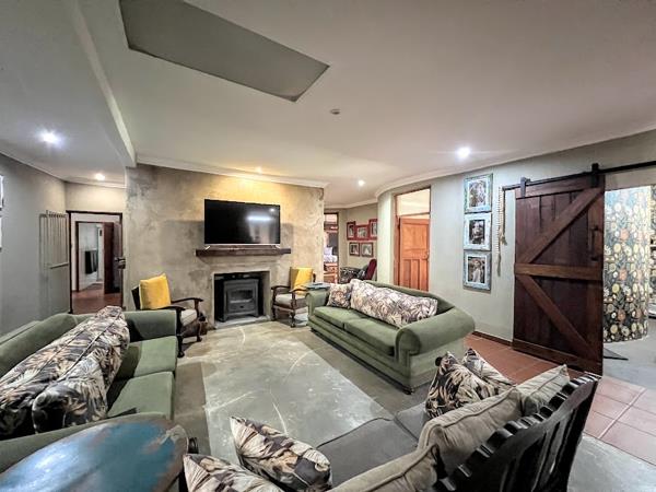 Exceptional six bedroom home on agricultural land with endless opportunities. The residential building offers warm, rustic accommodation for larger families, friend groups, and those seeking to unwind. It consist of three individual, yet interlinked buildings that is perfect for an extended family. It could also be utilized as guest accommodation for the many wedding venues in this picturesque area. Total of three kitchens, six large bedrooms, six bathrooms + a guest toilet, eight indoor reception areas, three outdoor entertainment areas, an extraordinary swimming pool, lovely gardens, ample storage facilities, office space, and much more...