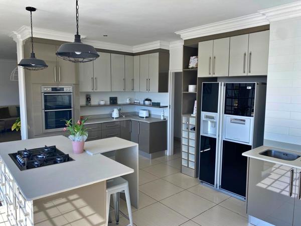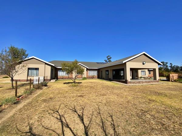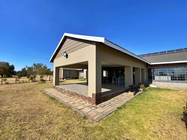 FIT FOR A KING. As you enter this masterpiece you enter with a large reception area into a property that offers expansive living areas, generously sized rooms, and ample garage space, ensuring comfort and convenience for all your needs. Extremely neat residence with very high-quality finishes. Dwelling consists of two lounges, a TV room, a family room, a very modern kitchen with pantry, scullery and laundry. A large stoep next to a sparkling pool gives you an expansive undisturbed view to the North. Five bedrooms and four bathrooms, a walk-in cupboard, with study and six garages with a 10-Kilowatt Solar system with 16x 450-Watt solar panels and three 3.7-watt Lithium-Ion batteries. Water is supplied by borehole. You also have a three-bedroom staff cottage with bathroom and kitchen. ALL buildings, about 2,5 hectares is electric fence fenced. Also, eight CCTV cameras provide security. Rest of the property is cattle fenced.