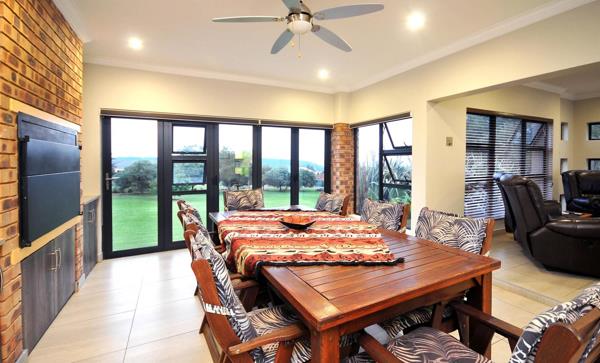 Rental option at R50 000.00 per month as well. Family home boasting a picturesque view, enhanced by its open-plan living spaces that evoke a sense of expansiveness, perfect for hosting gatherings and creating cherished moments. The heart of the home, the kitchen, features a cozy breakfast area and a central island, serving as a hub for both relaxation with morning coffee and effortless culinary endeavors.