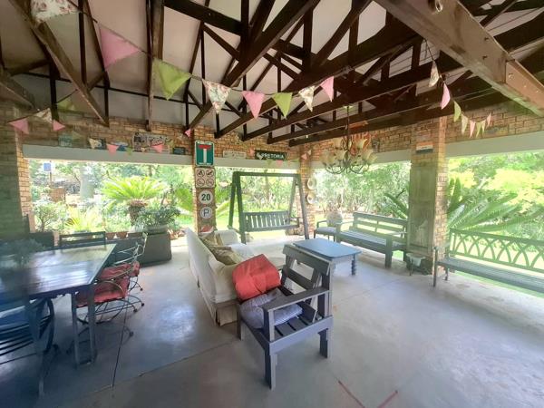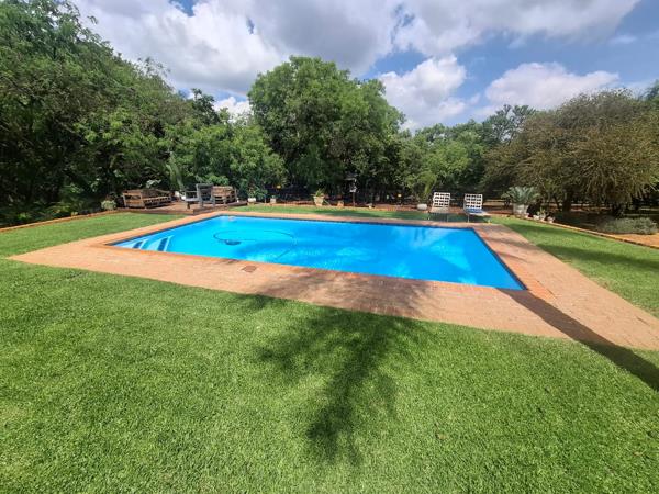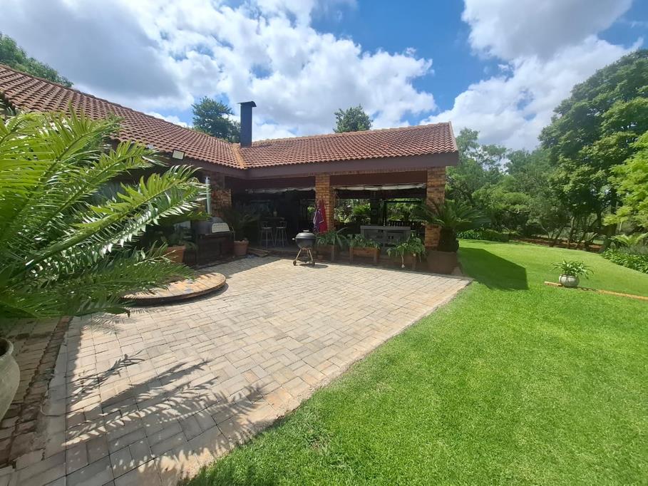 The property boasts extensive gardens filled with a variety of plants and trees, creating a peaceful, natural environment.