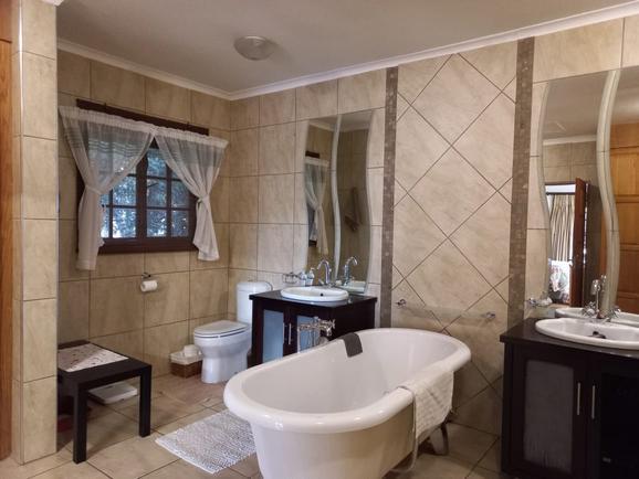 6 bedrooms, Main is en-suite with spacious balcony, 3 Bathrooms, 2 guest toilets, 4 living and entertainment areas and 1 covered patio and built in braai, opening onto the swimming pool and garden, a fireplaces, walk in strong room, Open plan kitchen with ample solid wood cupboards, scullery and laundry and two walk in linen cupboards. Air conditioners in just about every room and living area.