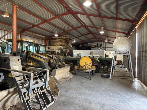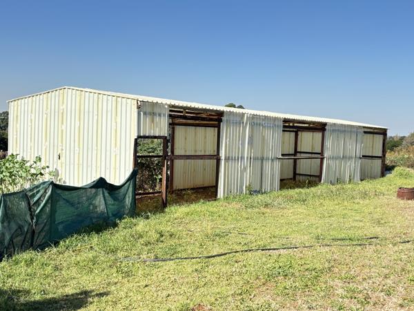 Beautiful pristine bush with 450 sq. meter bricked shed with concrete floor, two strongrooms and toilet/shower/basin. Big paved area with two staff quarters with ablution. a Second shed of 130 sq. meters and hothouse, 100 sq. meters and five chicken houses for layers. Very strong borehole of 20 000 liters per hour and ESCOM electricity, three phase 25 KVA. All building fenced and land borders game farms on two sides. Ideal for goat farming on the side. Payment of VAT is applicable.