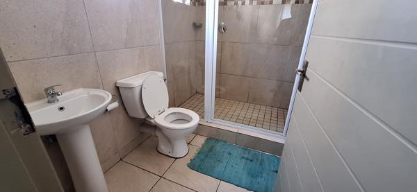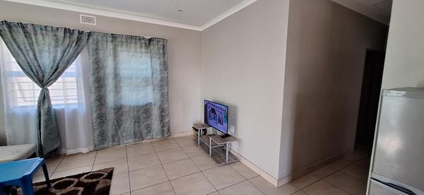 It features two bathrooms, one with a shower and the other with a bath, as well as an open-plan kitchen and living area. The home is tiled throughout and boasts brand-new, well-maintained finishes.