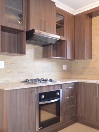 Step inside to a well-appointed interior featuring a comfortable lounge area, providing a welcoming space for relaxation. The modern kitchen is a true highlight, boasting dark wood-look cabinetry, ample granite-style countertops, and a stylish wood-effect tile backsplash. Equipped with a built-in gas hob and oven, this functional kitchen is perfect for everyday culinary activities. This home thoughtfully provides two comfortable bedrooms and a single well-appointed bathroom, designed for practical and efficient living.