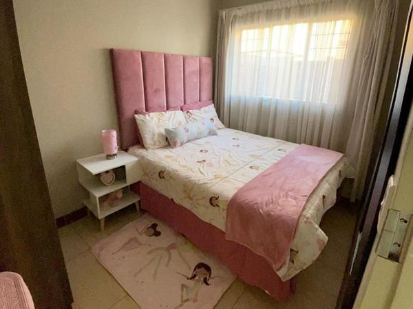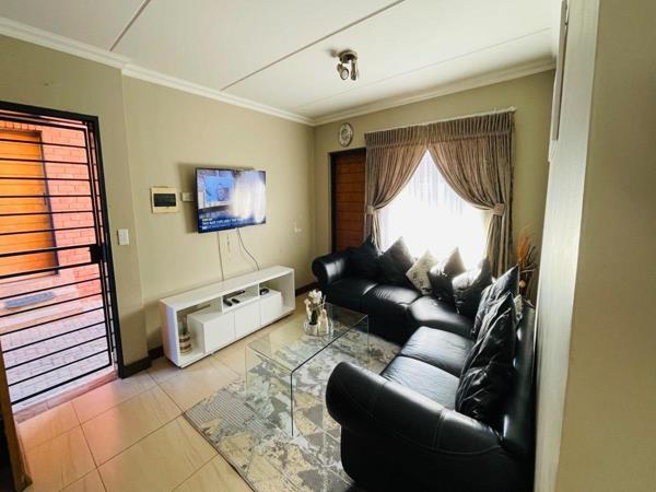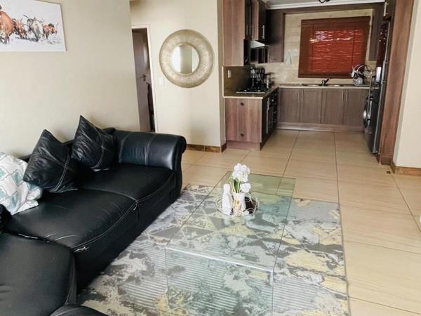 Spacious two-bedroom ground-floor unit, a family bathroom and an open-plan living area that opens directly onto a private garden. A fully fitted kitchen. Outside offers a secure covered parking bay, visitor parking, a communal braai area, and a childrens play area. Security includes controlled access, 24-hour guards, and patrolled security. Additional features include prepaid electricity. Vacant on transfer with potential rental income of approximately R8 500 per month.