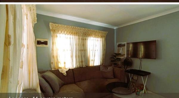 This 2 bed house consists of a kitchen with fitted cupboards, a lounge, one bathroom and a carport for 2 cars.