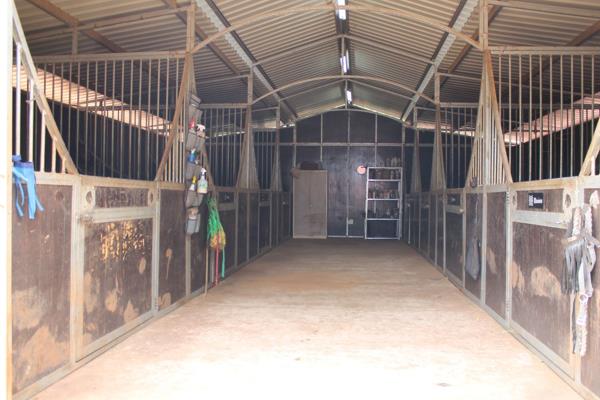 The equestrian facilities have an impressive brick-built horse stables with three foaling boxes/stallion stables, along with a tack and feed room as well as a barn-type horse stables that include eight standard stables, complete with self-watering facilities and cribs with adjoining water tank, ensuring reliable water supply for livestock. There is a professionally constructed horse arena made of silica, ideal for training or leisure riding as well as five well-maintained camps designed for horse rotation, grazing, and optimal pasture use.