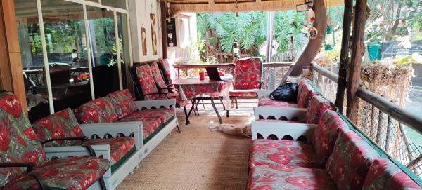 For outdoor recreation, there is a dedicated bonfire area, perfect for evening gatherings under the stars. A sparkling swimming pool is set within the beautiful tropical garden, providing a serene retreat for relaxation and leisure.