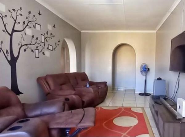 This three-bedroom home offers comfort and convenience, featuring two bathrooms, with the main bedroom boasting a relaxing corner bath.